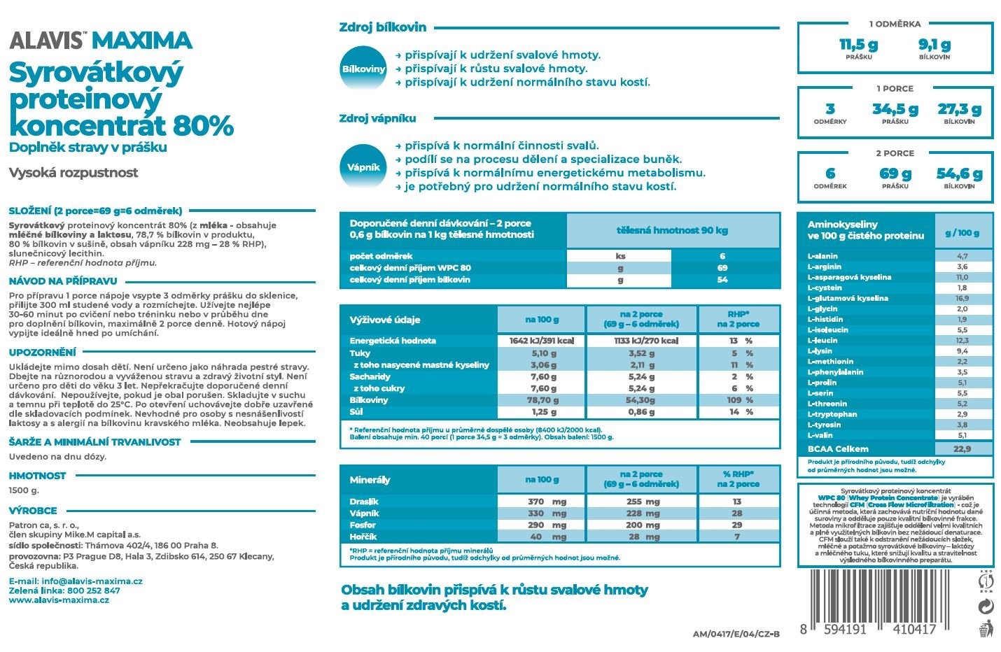 Dlho pred tým, než sme uviedli výživový doplnok ALAVIS™ MAXIMA WHEY PROTEIN CONCENTRATE do distribúcie, sme urobili detailný prieskum proteínových prípravkov po celom svete. Ako najlepšie sme vyhodnotili nemenovanú značku pôvodom z USA. Zadanie pre nás bolo jednoduché. Vytvoriť nami vybraný proteínový prípravok pre značku ALAVIS MAXIMA ešte lepší. Ak sa nám to podarilo, ohodnoťte sami. ALAVIS™ MAXIMA WHEY PROTEIN CONCENTRATE nespôsobuje tráviace problémy, ba práve naopak, je ľahko stráviteľný, chutí výborne, neutrálne, vonia po kvalitnom mlieku z farmy. Nebudete musieť riešiť príchute, ktoré sa čoskoro omrzia.