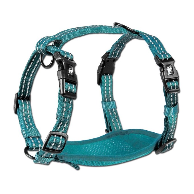 Vyskúšajte náš základný postroj pre psy, ktorý je vybavený sieťovým polstrovaním a reflexnými prvkami pre bezpečné užívanie. Je to jedinečný dizajn s troma sponami, takže sa dá nasadiť ako obojok a potom pripevniť okolo pásu.
