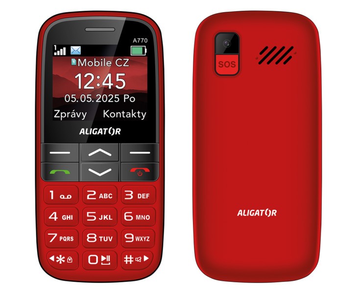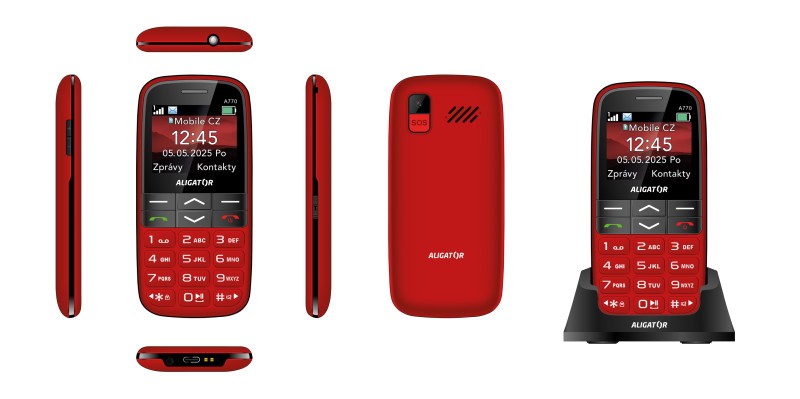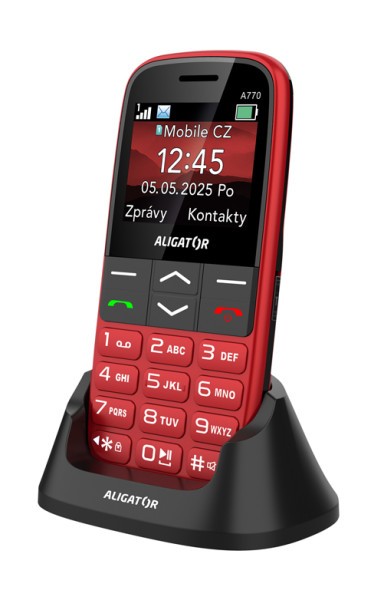 Aligator A770 Senior je prehľadný tlačidlový telefón ideálny pre seniorov a začiatočníkov. Ponúka výborne čitateľný 2,2″ TFT displej s vysokým kontrastom, dostatočne veľké tlačidlá a hlasný reproduktor – všetko pre jednoduché ovládanie aj pre používateľov so zhoršeným zrakom alebo sluchom. Elegantné kompaktné telo (128 × 61 × 14 mm, 106 g) je dostupné v čiernej alebo červenej farbe a v balení je praktická nabíjecí základňa, vďaka ktorej stačí telefón vložiť – nabíjanie sa spustí automaticky. S výkonnou 1 700 mAh batériou vydrží telefón až 14 dní v pohotovostnom režime a podporuje pohodlné nabíjanie cez USB‑C.