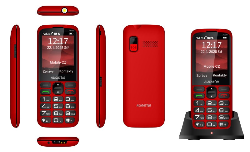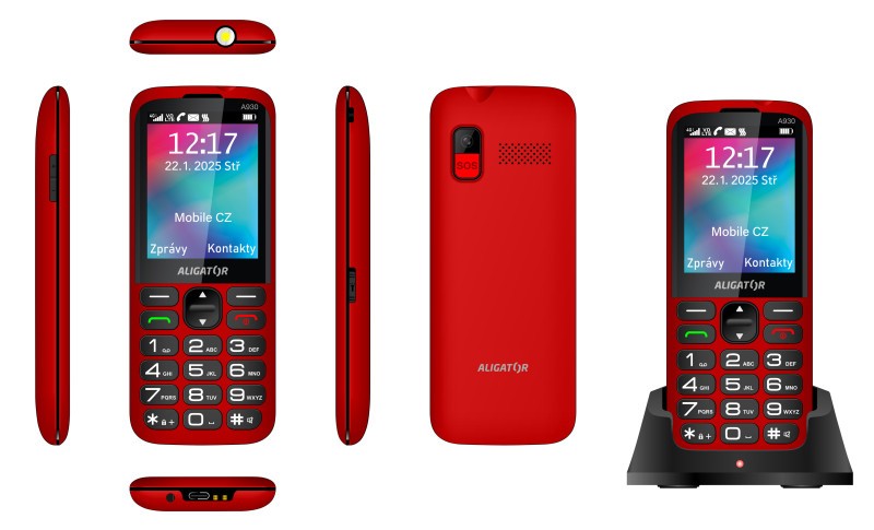 ALIGATOR A930 GPS Senior červený + stolní nabíječka