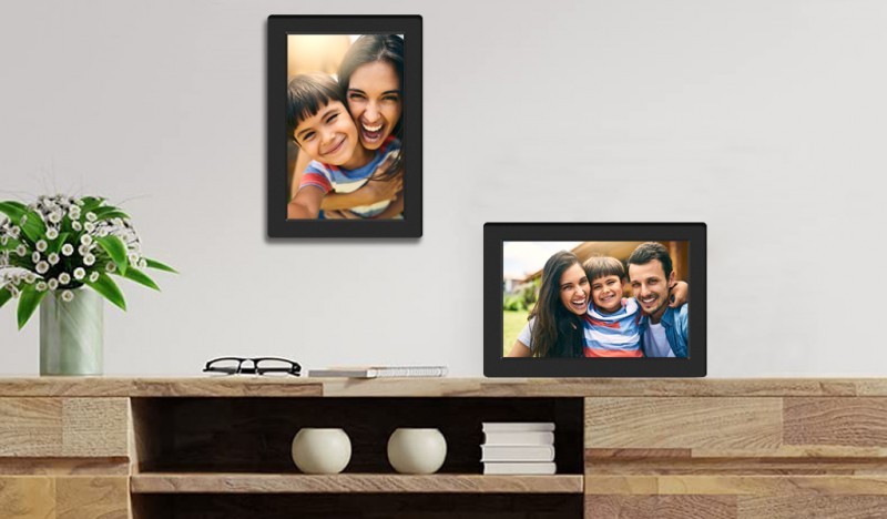 Decentný čierny rám? Ktorému dávate prednosť? Pri navrhovaní fotorámčeka sme mysleli na to, aby bol moderný, ale zároveň sa hodil do každej domácnosti. Od klasického fotorámčeka na stole ho nerozoznáte.