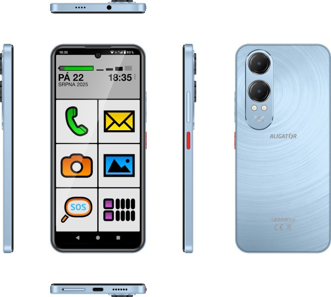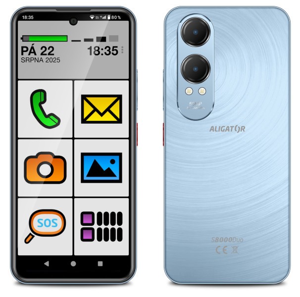 Veľká batéria s kapacitou 5 000 mAh zaručuje dlhú výdrž batérie na jedno nabitie, takže telefón nemusíte nabíjať každý deň. Aligator S8000 Senior ponúka aj dual SIM, Bluetooth, Wi-Fi, FM rádio, fotoaparát a možnosť pripojiť slúchadlá cez 3,5 mm jack. Vďaka kombinácii jednoduchosti, spoľahlivosti a užívateľsky prívetivého rozhrania je tento model ideálnou voľbou pre seniorov, ktorí chcú moderný, ale ľahko ovládateľný smartfón.