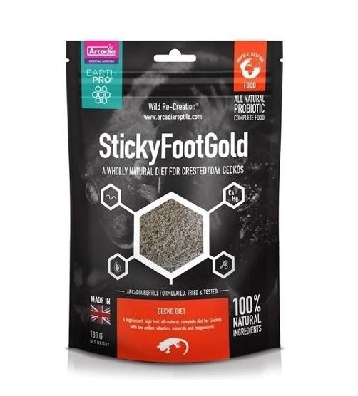 Sticky Foot Gold je v súčasnej dobe tým najlepším kompletným krmivom na trhu. Je zložené len z prirodzených, prírodných a bio produktov a hmyzu, nenájdete v ňom teda žiadne neprirodzené zložky, ako napr. sóju alebo obilniny.