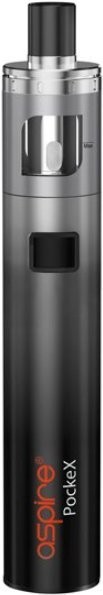 PockeX AIO je jednoduchá a výkonná ALL in ONE elektronická cigareta od společnosti aSpire. Svými vlastnostmi uspokojí jak úplné začátečníky, tak i zkušené uživatele, kteří si chtějí prožít vaping bez jakéhokoli nastavování (výkon je nastavován automaticky v závislosti na zvoleném odporu atomizeru). Vrchní plnění pojme až 2ml liquidu s možností vyjmutí clearomizeru pro snadnou údržbu. Žhavicí hlava se skrývá pod širokým náustkem, který přináší ještě větší množství páry. Nové hlavy PockeX používají technologii U-Tech, tj. dvě vertikální spirálky vedle sebe, kde vzduch prochází postupně oběma spirálkami = velké množství páry a autentická chuť liquidu. Vestavěná baterie disponuje kapacitou 1500mAh. Nabíjení umožňuje micro USB vstup (e-cigaretu lze používat i při nabíjení).