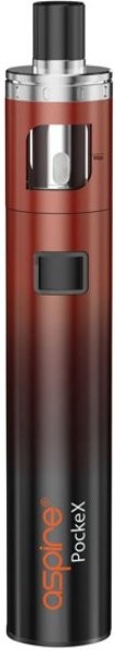 PockeX AIO je jednoduchá a výkonná ALL in ONE elektronická cigareta od společnosti aSpire. Svými vlastnostmi uspokojí jak úplné začátečníky, tak i zkušené uživatele, kteří si chtějí prožít vaping bez jakéhokoli nastavování (výkon je nastavován automaticky v závislosti na zvoleném odporu atomizeru). Vrchní plnění pojme až 2ml liquidu s možností vyjmutí clearomizeru pro snadnou údržbu. Žhavicí hlava se skrývá pod širokým náustkem, který přináší ještě větší množství páry. Nové hlavy PockeX používají technologii U-Tech, tj. dvě vertikální spirálky vedle sebe, kde vzduch prochází postupně oběma spirálkami = velké množství páry a autentická chuť liquidu. Vestavěná baterie disponuje kapacitou 1500mAh. Nabíjení umožňuje micro USB vstup (e-cigaretu lze používat i při nabíjení).