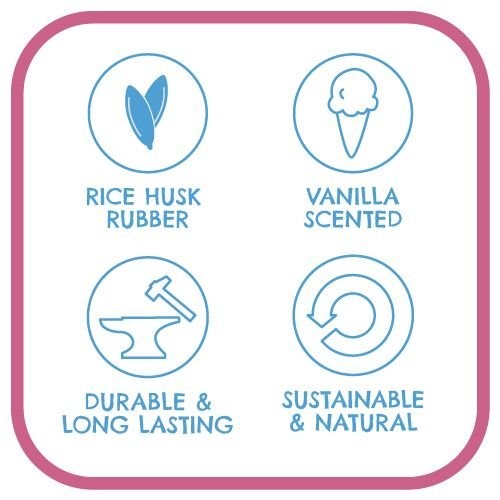 • Hračka je odolná, mierne nepravidelného tvaru pre väčšiu zábavu a najmä je netoxická