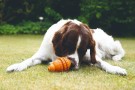 Plastová hračka pre psy s možnosťou ukrytia maškrty v spodnej časti.