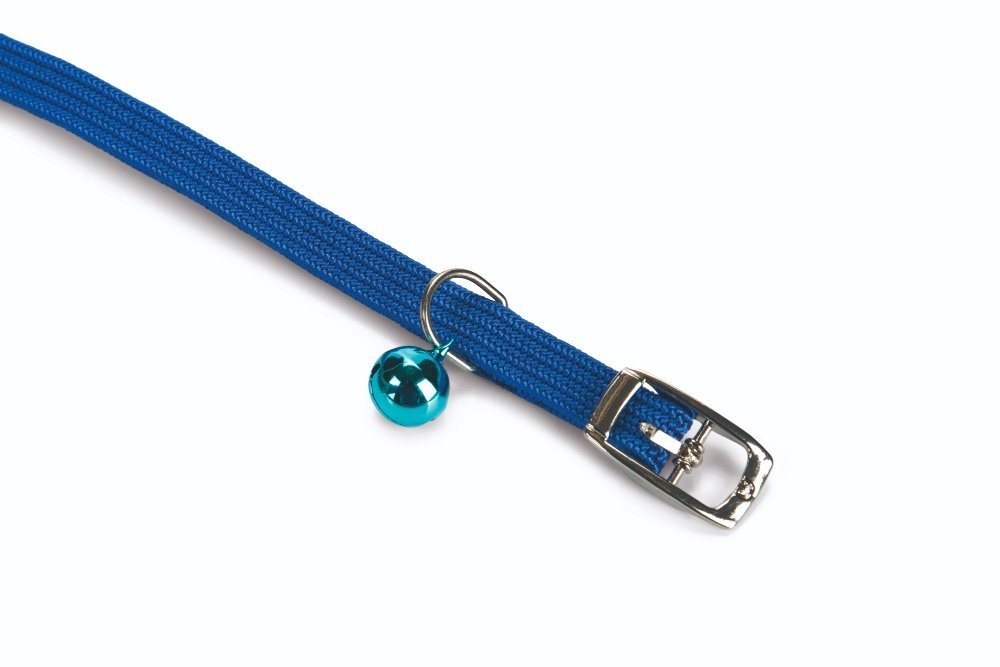 Modrý nylonový obojok pre mačky s rolničkou. Celý popis