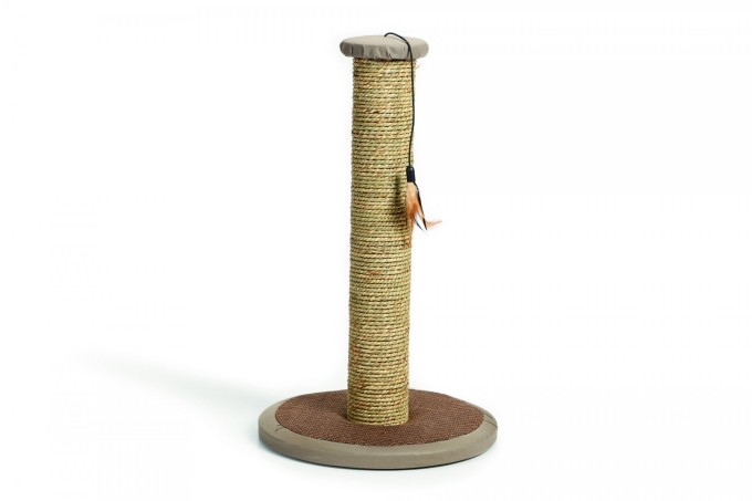 Škrabadlo pre mačky s efektným pierkom.