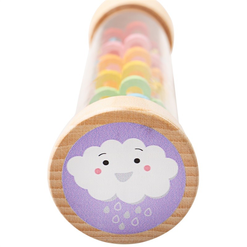 Roztomilá dřevěná hračka, která vydává zvuky deště. Při otáčení válcovité hračky se začnou pohybovat barevné perličky uvnitř, vytvoří zajímavý vizuální i zvukový efekt. Na obou stranách najdete dřevěné zátky s krásnou ilustrací slunce a mraku. Vyrobeno z kvalitních materiálů ze zodpovědných zdrojů. Splňuje evropské bezpečnostní standardy. Hlavní vlastnosti: poutavý zvukový a vizuální efektodolné provedení