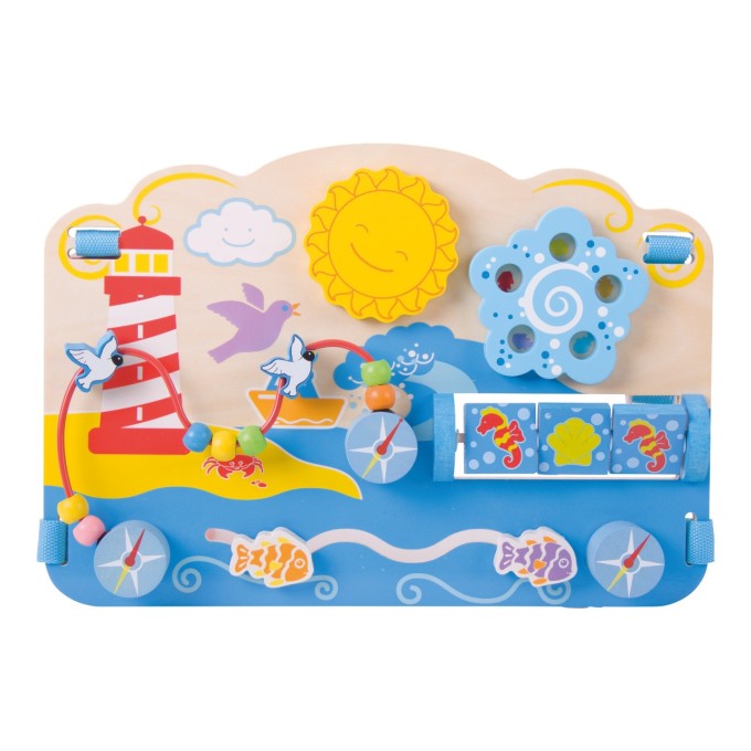 Podpořte zručnost a dovednosti svých ratolestí s pomocí této dřevěné desky s motivem moře! Tato hračka má nastavitelné úchyty a lze ji připevnit i k postýlce. Tato jedinečná dřevěná hračka pro miminko obsahuje otáčející labyrint, otočné mořské koníky a další zábavné prvky. Malé ruce mohou také pomáhat rackům pohybovat se po korálkovém labyrintu nahoru a dolů a také mohou posunovat rybičky. Vyrobeno z vysoce kvalitních, zodpovědně získaných materiálů. Splňuje aktuální evropské bezpečnostní normy. Vhodné od 6 měsíců. Hlavní vlastnosti: podporuje zručnost a smyslové dovednostinabízí řadu různých aktivit určených k zapojení motoriky u nejmenšíchvyrobeno z vysoce kvalitních, zodpovědně získaných materiálů
