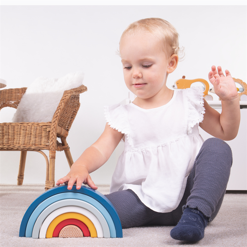 S těmito stohovacími půlkruhy mohou malé ručičky sestavovat různé tvary a předměty, zatímco se učí vše o různých velikostech. Vyrobeno z masivního dřeva a obarveno netoxickými barvami. Jakmile hrací doba skončí, může sloužit jako zábavná dekorace do ložnice nebo školky pro vaše nejmenší. Rozvíjí kreativitu a obratnost. Vyrobeno z vysoce kvalitních 100% FSC certifikovaných materiálů a zodpovědně pocházejících materiálů. Vyhovuje současným evropským bezpečnostním normám. Hlavní vlastnosti: krásná duha v pestrých barváchobsahuje 7ks duhyrozvíjí kreativitu a obratnost Značka a certifikát FSC® (Forest Stewardship Council) zaručuje, že dřevo, ze kterého byl produkt vyroben, nebylo vytěženo nelegálně a pochází z lesů obhospodařovaných šetrným či přírodě blízkým způsobem, ve kterém jsou dodržovány přísné environmentální a sociální požadavky. Značka FSC® na výrobku znamená, že svým nákupem pomáháte chránit lesy a podporujete šetrné, odpovědné či přírodě blízké hospodaření, díky kterému jsou naše lesy stabilnější, zdravější, mají přirozenou druhovou skladbu a lépe odolávají negativním následkům klimatických změn.