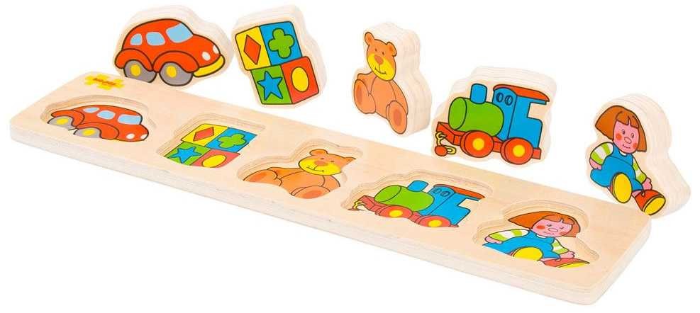 Přiřaďte každý pestrobarevný dřevěný dílek ke správně tvarovanému otvoru na základní desce. Dřevěné puzzle Bigjigs Toys pomáhají rozvíjet slovní zásobu a pomáhají dětem vybavit si slova, když rozpoznávají tvary, barvy a obrázky. Každý masivní dřevěný dílek puzzle má ideální velikost, aby ho malé ručičky snáze zvedly, uchopily, prozkoumávaly a vyměňovaly. Pomáhá rozvíjet zručnost, smyslové dovednosti a koncentraci. Dřevěné základní desky puzzle Bigjigs Toys jsou potištěny obrázky nebo barvami, které napomáhají procesu učení a zvyšují vzdělávací hodnotu. Vyrobeno z vysoce kvalitních, zodpovědně získaných materiálů. Splňuje aktuální evropské bezpečnostní normy. Obsahuje 5 dílků puzzle.  Hlavní vlastnosti: obsahuje 5 dílkůvelké dílky puzzlepomáhá rozvíjet zručnost, smyslové dovednosti a koncentraci