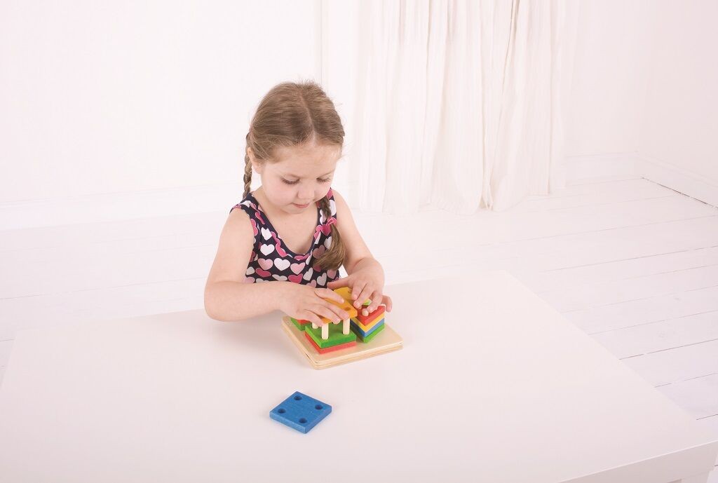 Poškozený obal. Nové zboží bez závad. Tato dřevěná hračka přispívá nejen k vývoji dětské motoriky, ale také k výuce prvního počítání, poznávání barev a tvarů. Součástí balení je vše dle obrázku. Vyrobeno z vysoce kvalitních a zodpovědně pocházejících materiálů. Vyhovuje současným evropským bezpečnostním normám. Hlavní vlastnosti: pestrobarevné dřevěné tvarypodporuje motoriku a rozpoznávání tvarůrozvíjí obratnost a koordinaciobsahuje 17 hracích dílů