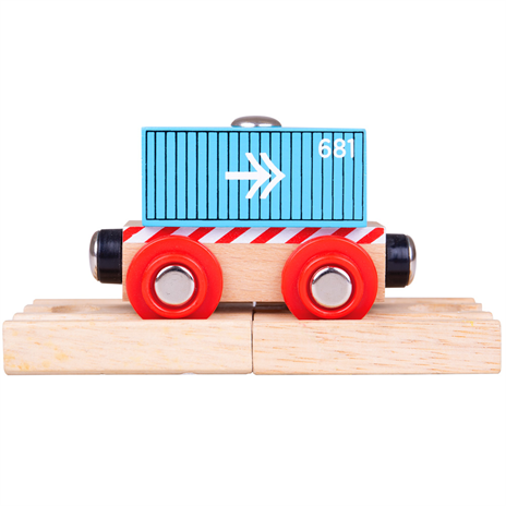 Převezte zboží do cíle! Naložte a vyložte náklad Velkým jeřábem BJT175 (není součástí balení), díky magnetu shora kontejneru. Modrý kontejnerový vagón má také magnetické spojky, díky kterým se může připojit k jiným vagónům nebo lokomotivám z řady Bigjigs Rail. V balení také 2 kusy dřevěných kolejí. Hlavní vlastnosti: Vláčkodráhy a jejich příslušenství značky Bigjigs Rail je možno kombinovat se všemi dalšími dřevěnými vláčkodráhami na trhu.Vyrobeno z kvalitních a zodpovědně získaných přírodních materiálů.Odpovídá současným evropským bezpečnostním normám.Podporuje představivost, obratnost a koordinaci.