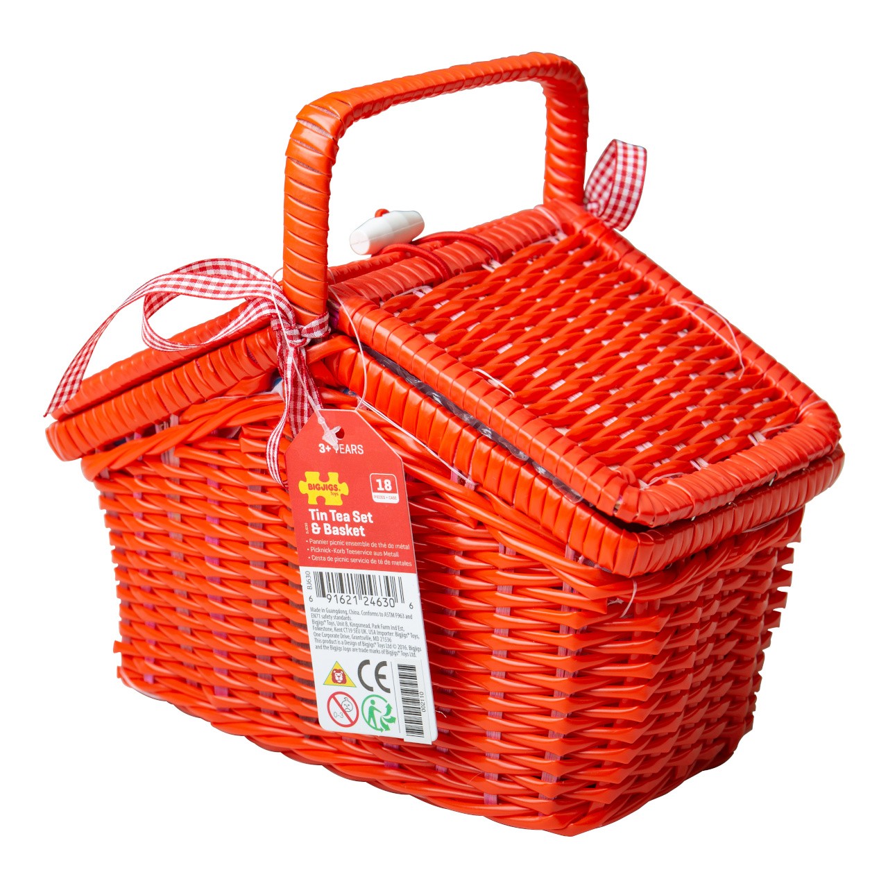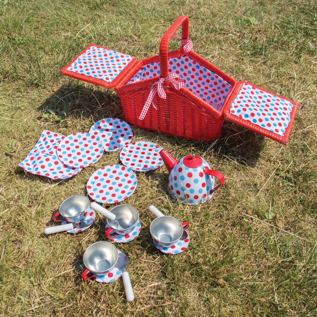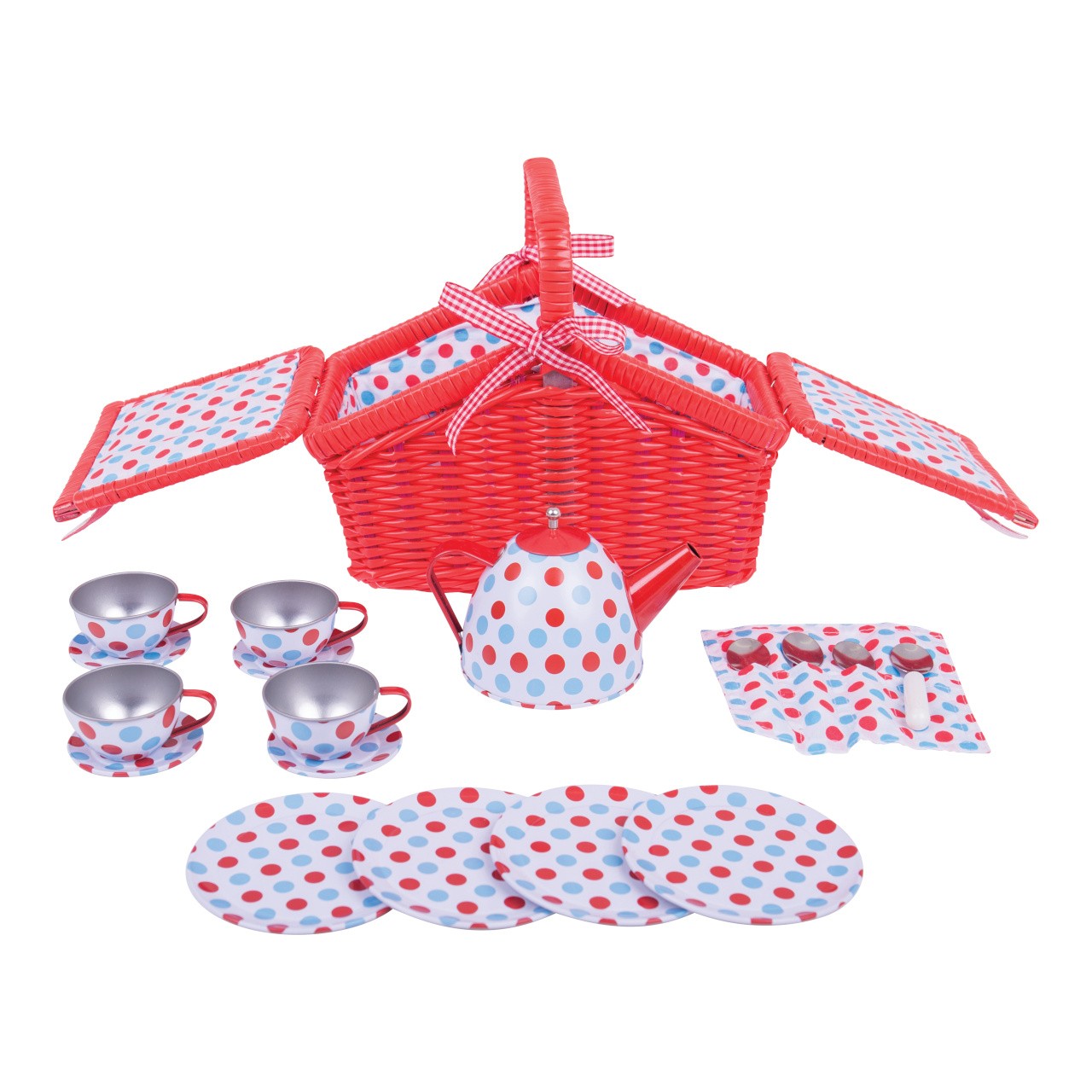 Bigjigs Toys Čajová puntíkovaná sada v piknikovém koši