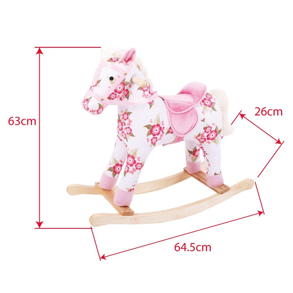 Vyražte na projížďku! Tento nádherný, pečlivě vyrobený dřevěný houpací kůň má nádherný květinový design s měkkým růžovým sedlem a uzdou. Pevná a snadno uchopitelná madla usnadňují držení. Vyrobeno z vysoce kvalitních materiálů. Všechny Bigjigs Toys hračky odpovídají současným evropským bezpečnostním normám. Tento kůň vyžaduje počáteční montáž. Hlavní vlastnosti: pevná a stabilní dřevěná konstrukcepotaženo měkkyým plyšemmadla velikostně ideální pro dětské ručičkyvýška sedu 40 cmpodporuje pohybovou aktivitu a rovnováhu