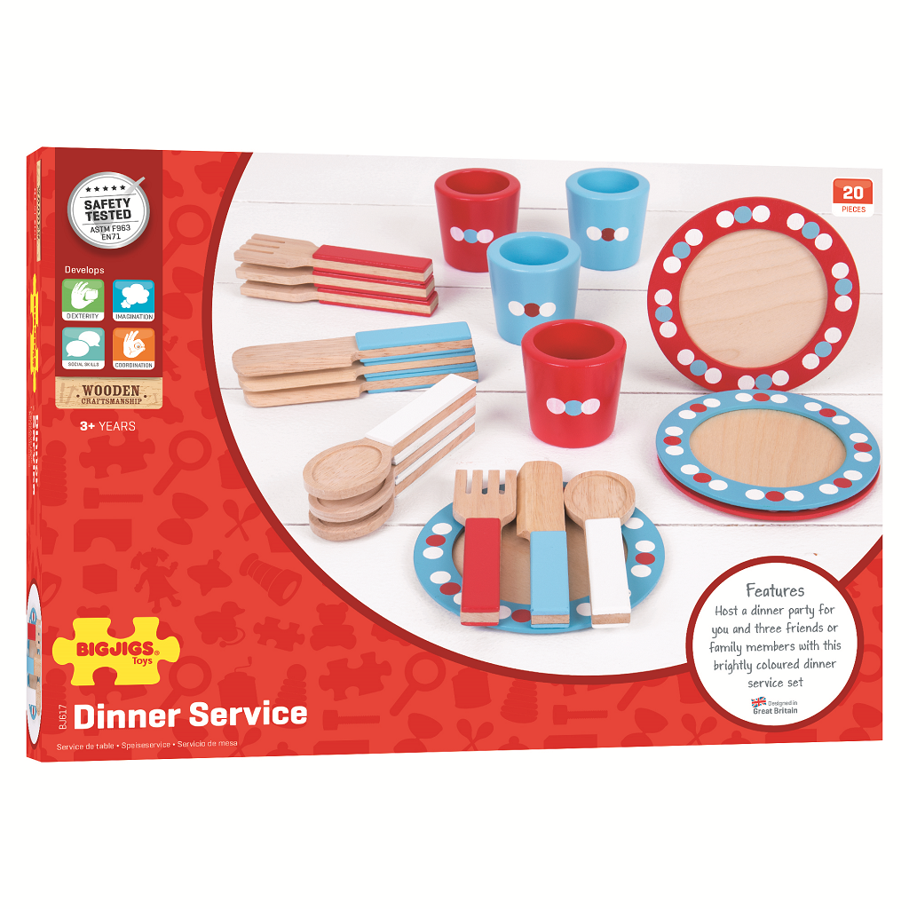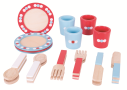 Bigjigs Toys Dřevěný jídelní servis s puntíky