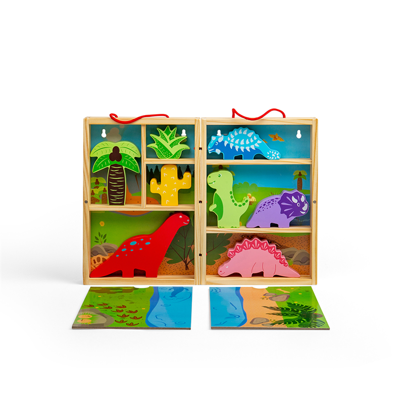 Přenosná krabička stylizovaná do světa dinosaurů, kterou sebou můžete vzít kamkoli. Děti od 18 měsíců můžou pomocí této hračky objevovat starý svět plný dinosaurů. Podporuje kreativitu a představivost. Hladké robustní hrací figurky mají ideální velikost pro malé ručičky k uchopení, zkoumání a výměně.  Hlavní vlastnosti: přenosnostvhodné již od 18 měsícůvyrobeno ze dřeva