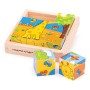 Devět dřevěných kostek vytváří šest různých obrázků. Otočte každou kostkou a vytvořte obrázek, nebo je smíchejte pro zábavu! Každý kus robustní dřevěné skládačky je vyroben tak, aby usnadnil zvedání, uchopení, zkoumání a přeměnu v malých rukou. Pomáhá rozvíjet obratnost, dovednost a soustředění. Vhodné na doma i na cesty. Šikovnou dřevěnou podložku lze použít jako základnu skládačky (zvláště užitečné při cestování) a umožňuje bezpečné uložení všech dílků. Hlavní vlastnosti: vyrobeno z vysoce kvalitních, odpovědně získaných materiálů odpovídá současným evropským bezpečnostním normámobsahuje 9 kostek