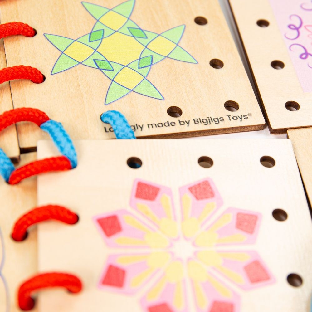 Prošněrujte dřevěné šněrovací obrázky a vytvořte krásnou dřevěnou patchworkovou koláž! Šněrovací hry jsou fantastickým způsobem, jak rozvíjet jemnou motoriku, kreativitu a obratnost dětí, když protahují tkaničky otvory v dřevěných obrázcích.Naše jedinečné šněrovací obrázky obsahují řadu zářivých barev a vzorů, které upotají a pomáhají udržet pozornost. Dodává se s 16 dřevěnými obrázky a spoustou tkaniček v modré, černé, zelené, červené, žluté a hnědé barvě. Vyrobeno z vysoce kvalitních, zodpovědně získaných materiálů. Tkaničky jsou také vysoce kvalitní a bezpečné pro nejmenší. Splňuje aktuální evropské bezpečnostní normy. Vhodné od 3 let. Hlavní vlastnosti: Provlékněte tkaničky dřevěnými obrázky a vytvořte krásnou šněrovanou kolážRozvíjí jemnou motoriku a kreativitu dětíVyrobeno z vysoce kvalitních, zodpovědně získaných materiálůVhodné od 3 let