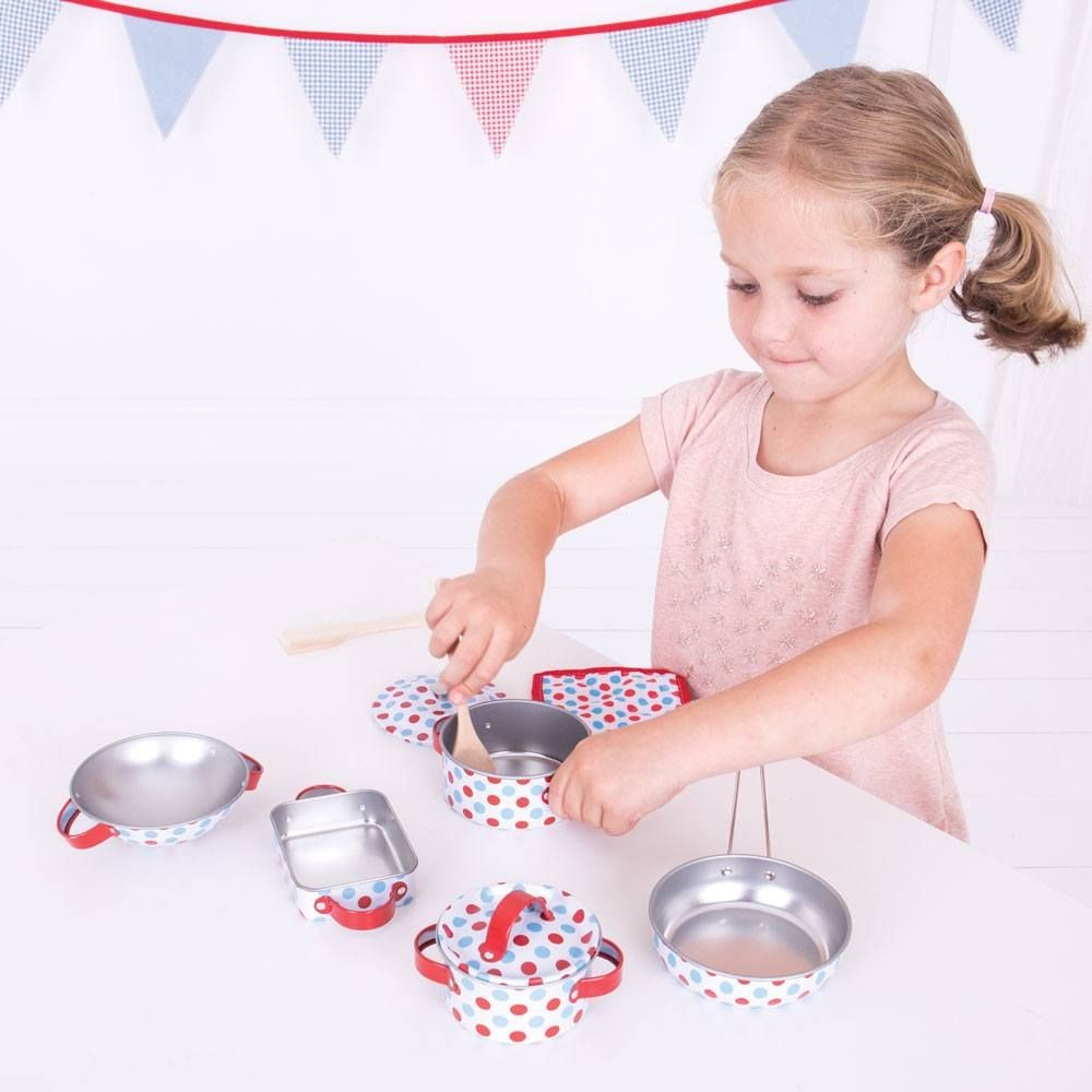 Bigjigs Toys Sada nádobí s puntiky