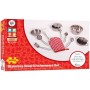 Tato profesionálně vypadající sada kuchyňského nádobí, ideální pro malé ručičky, inspiruje a potěší mladé kuchaře stejnou měrou! Kovové hrnce, pánve a naběračky jsou dodávány s praktickou chňapkou. Skvělý způsob, jak vzdělávat nejmenší o každém kroku přípravy, tvoření a vaření v kuchyni! Podporuje kreativní a nápadité hraní rolí. Splňuje aktuální evropské bezpečnostní normy. Skládá se ze 13 hracích prvků. Hlavní vlastnosti: obsahuje 13 dílůpodporuje kreativitu a nápaditostrozvíjí sociální dovednostizlepšuje obratnost a motoriku