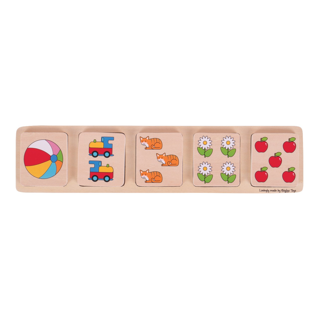 Spočítejte počet obrázků na jednom dílku puzzle a přiřaďte jej ke správnému číslu na základní desce. Zábavná hra pro rozvoj základních dovedností počítání. Toto masivní dřevěné puzzle obsahuje 5 dílků, které jsou velkoryse velké, aby je malé ručičky snáze zvedaly, uchopovaly, zkoumaly a vyměňovaly.  Dřevěné puzzle Bigjigs Toys pomáhají dětem rozvíjet slovní zásobu ,vybavit si slova, když rozpoznávají tvary, barvy a obrázky. Dřevěné základní desky puzzle Bigjigs Toys jsou potištěny obrázky nebo barvami, které napomáhají procesu učení a zvyšují vzdělávací hodnotu.   Hlavní vlastnosti: Puzzle pomáhá rozvíjet zručnost, přizpůsobování, koncentraci a počítánívyrobeno z vysoce kvalitních, zodpovědně získaných materiálůsplňuje aktuální evropské bezpečnostní normy5 dílků puzzle