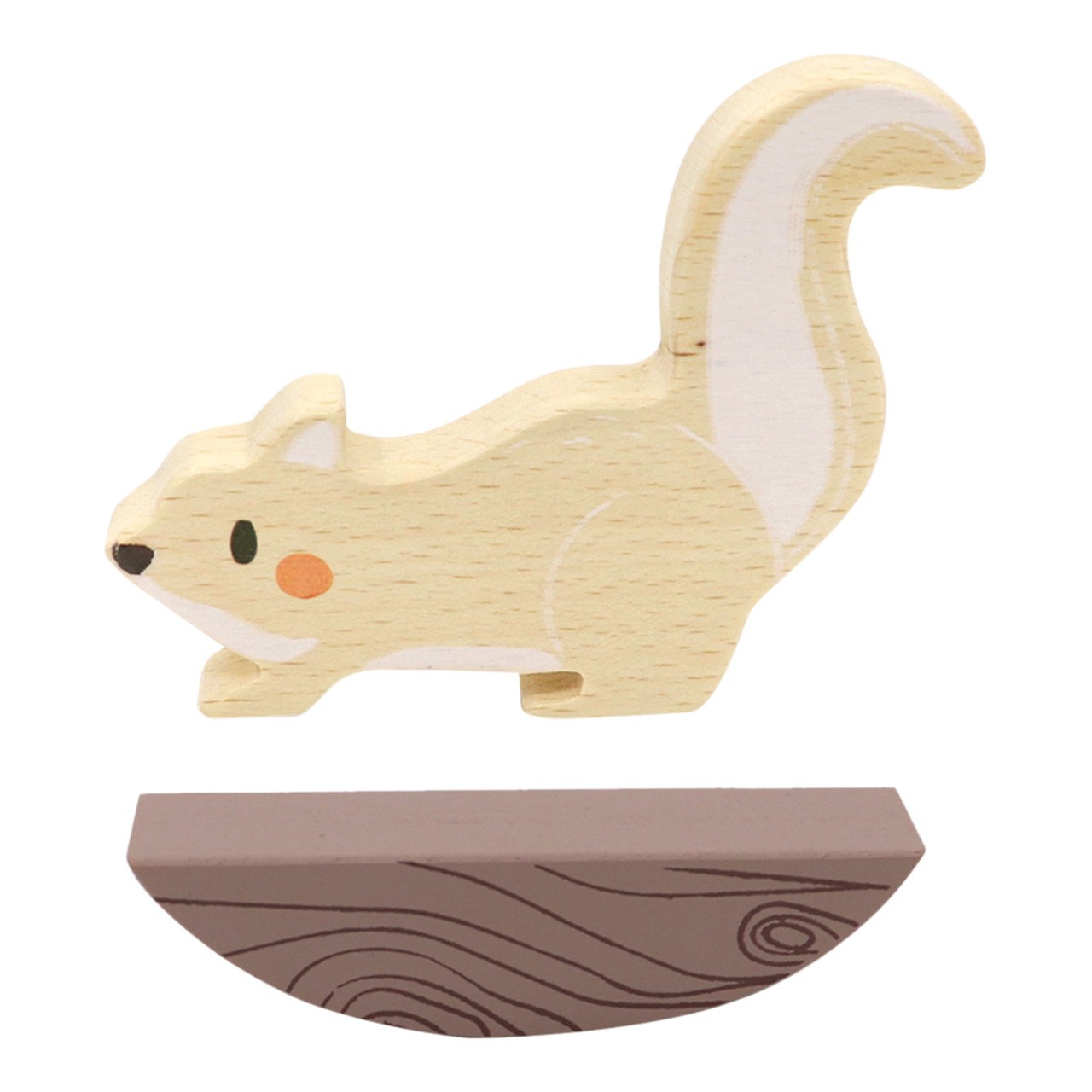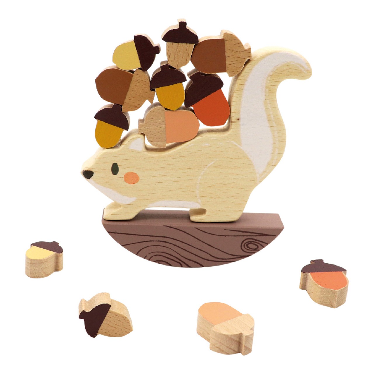 Rozpustilá veverka si chystá zásoby na zimu, unese všechny žaludy? Střídejte se v tazích s protihráčem a ukládejte postupně veverce zásoby tak, aby z vratké větve nespadla právě Vám, ale soupeři. Díky univerzálnímu návrhu lze figurku a herní dílky snadno využít při mnoha dalších hrách, nebo jako vkusnou ozdobu poličky v dětském pokoji. Součásti hry jsou vyrobeny za použití odolného masivního dřeva a nezávadných barev i laků. Hlavní vlastnosti:podstava, figurka veverky a 12 herních dílkůrobustní provedení z masivního dřeva