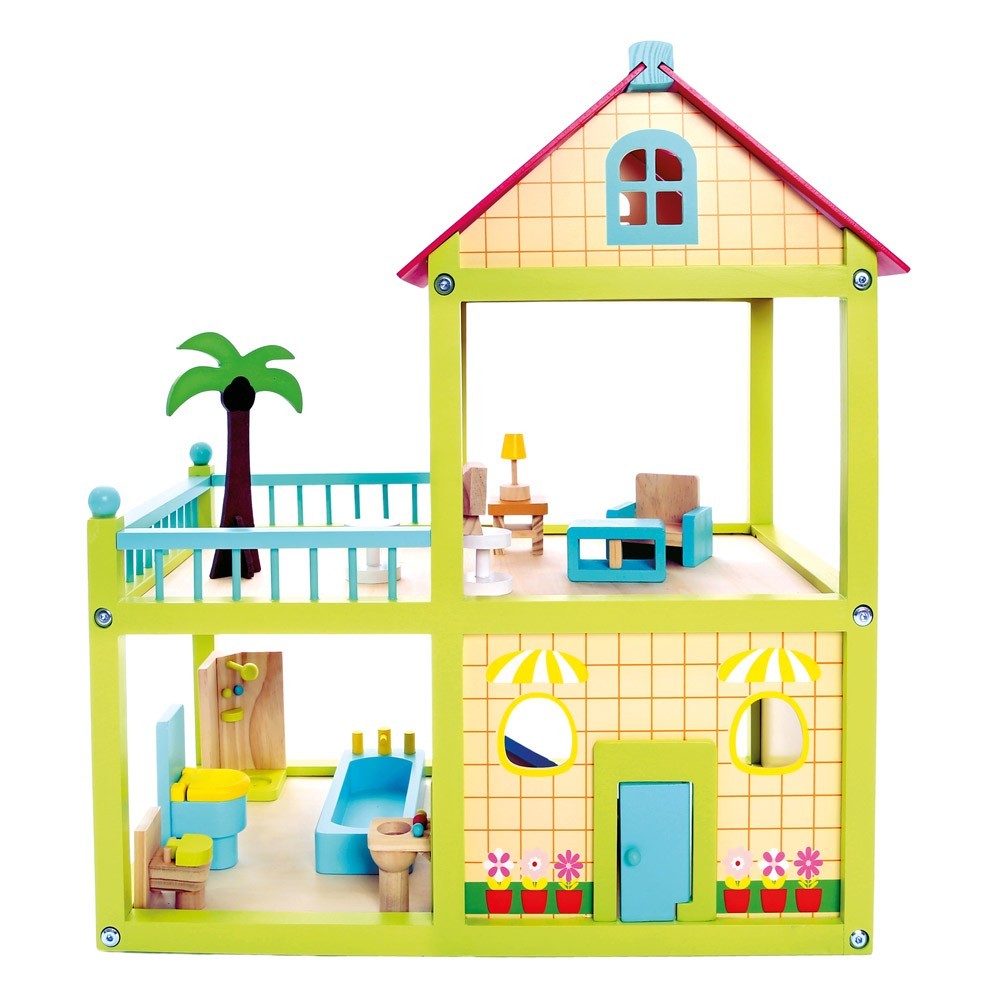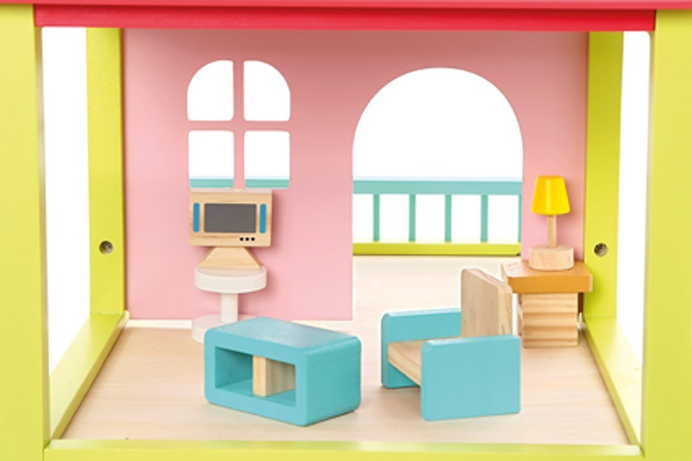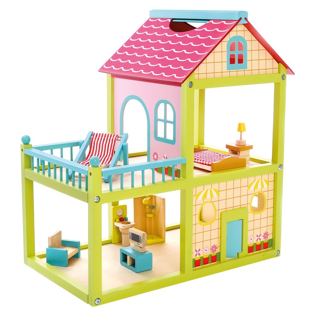Velký dřevěný domeček pro panenky v pestrých barvách je krásná hračka, která vzbudí zvědavost každého dítěte a udrží jeho pozornost po dlouhou dobu! Domeček pro panenky má terasu a je vybaven nábytkem. Hlavní vlastnosti: Podporuje herní nápadydomeček je celý otevřený pro lepší hranírozměry: 50 cm délka x šířka 32 x výška 55,5 cm