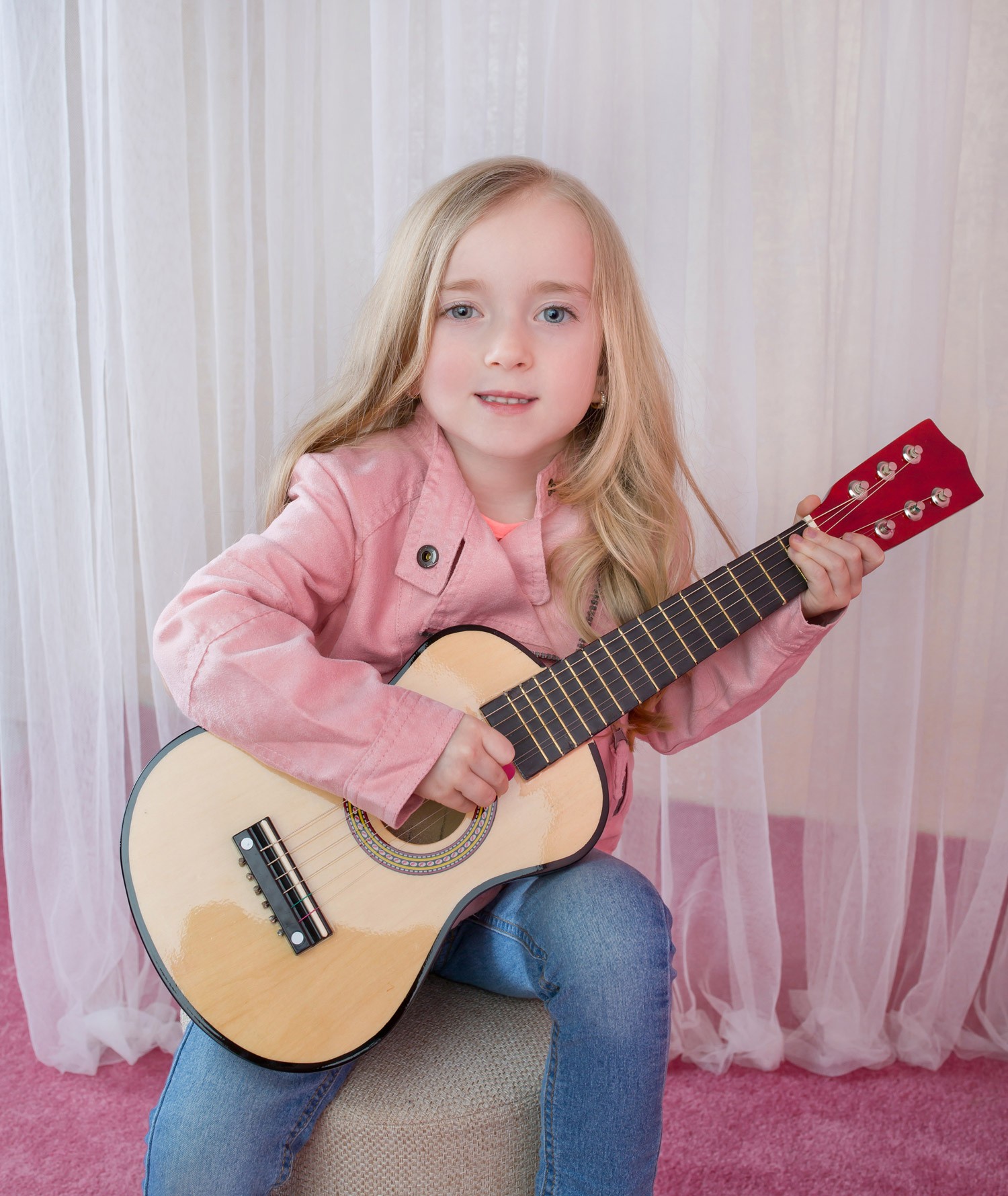Harmonicky znějící šestistrunná kytara pro malé hudebníky. Je vyrobena z lehkého, ale pevného dřeva. Jednotlivé struny lze samozřejmě ladit a mohou být v případě potřeby vyměněny. Dodáváno s trsátkem. Hlavní vlastnosti:kytara a trsátko6 strun, lze ladit a vyměnit