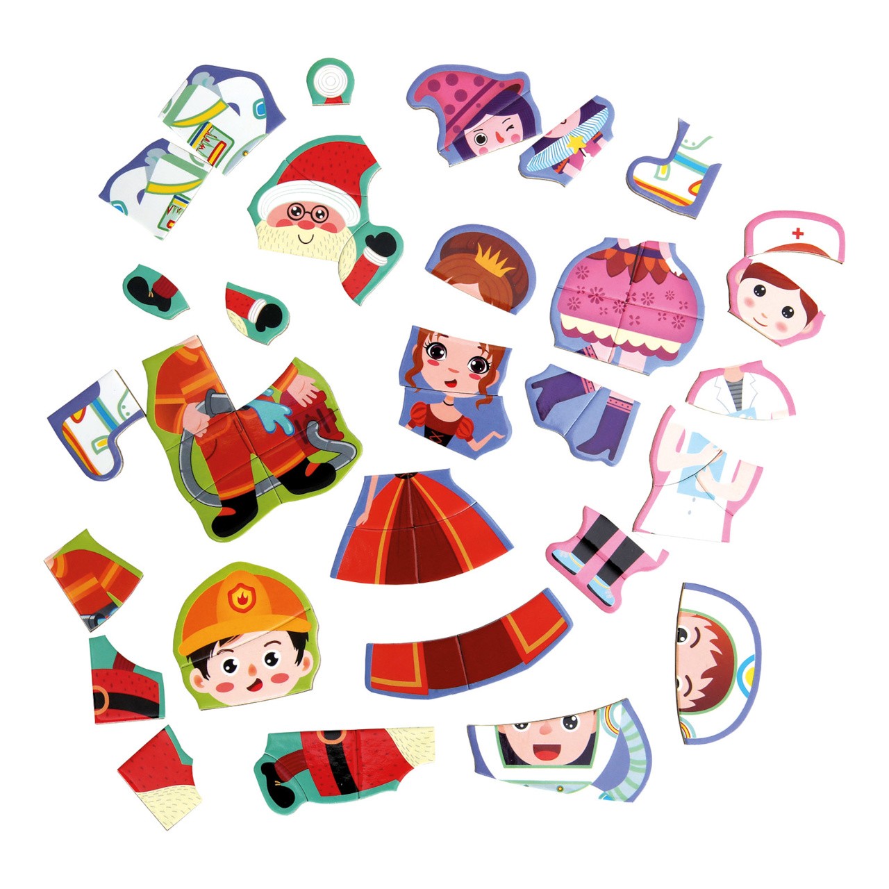 Magnetická skládačka nabízí dětem dvojí zábavu! Při sestavování rozličných postaviček mohou zdokonalovat rozpoznávání tvarů i barev, a rozvíjet tak své poznávací dovednosti. Je možno přitom využít dodávaných kartiček s návodnými obrázky, nebo skládat bez nich, s vyšší obtížností. S pomocí fantazie pak mohou děti hotové postavičky dále využít a rozehrát nejrůznějších scény a příběhy. Součásti jsou dodávány v kompaktní krabičce a sestavování probíhá na jejím víku, hru tak lze vždy snadno uklidit a může Vás provázet i na cestách.   Hlavní vlastnosti:95 dílů celkem; dílky ke skládání a návodné kartičkykompaktní, praktické balení