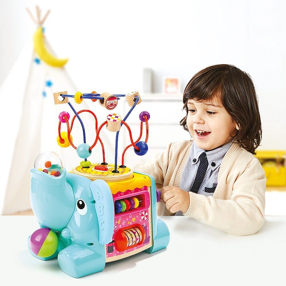 Motorická kostka ve tvaru slona je velice zábavná hračka pro malé děti. S mnoha různými úkoly, s nimiž se setkají při hraní s touto kostkou, si procvičí jemné motorické dovednosti rukou, natrénují logické myšlení a soustředění. Na vrchní straně kostky je umístěn motorický labyrint. Hlavní vlastnosti: Rozvíjí představivostMožnost naučit se barvy a tvaryProstorové povědomí a obratnostKoordinace rukou a očíPomáhá učit se tvořivosti a logickému myšlení
