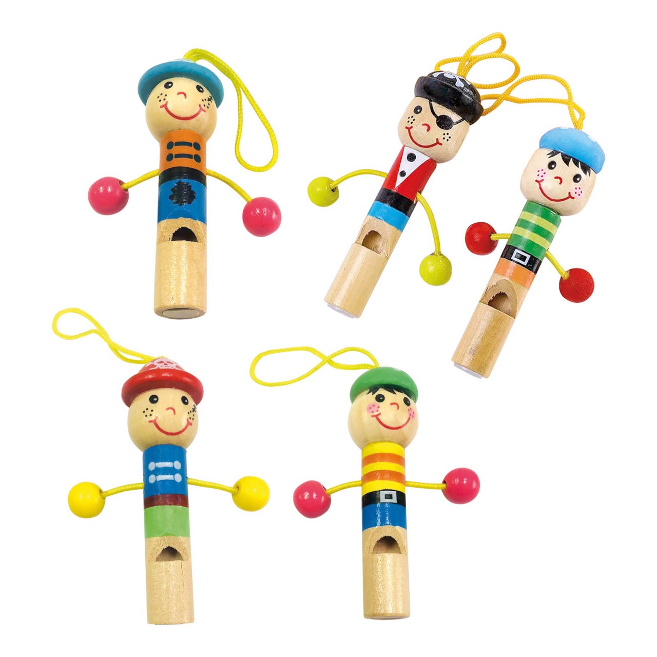 Barevné dřevěné píšťalky s veselými postavičkami a praktickým poutkem na zavěšení podporují rozvoj dětského sluchu. Vyluzují příjemný hlasitý zvuk, jsou proto vhodné také jako fotbalové, nebo signální píšťalky. Potěší jako drobný dárek k mnoha příležitostem! Vyrobeno z masivního dřeva a nalakováno nezávadnými barvami. Cena je uvedena za 1 ks, konkrétní motiv zasíláme náhodně. Hlavní vlastnosti:atraktivní motivuniverzální použitíodolné dřevěné provedení