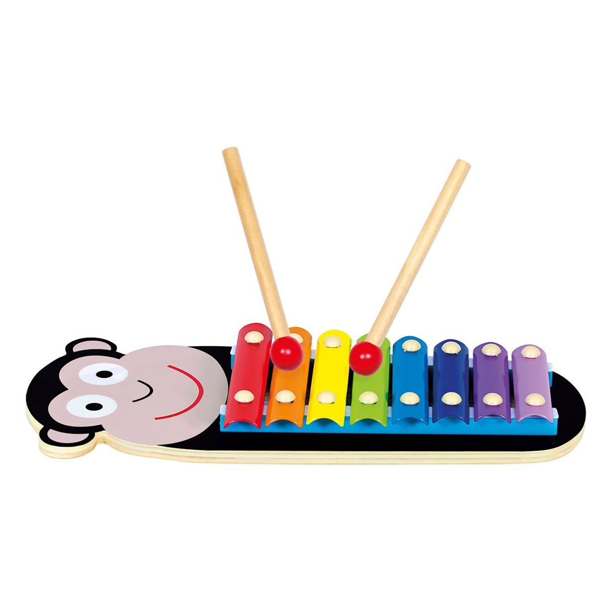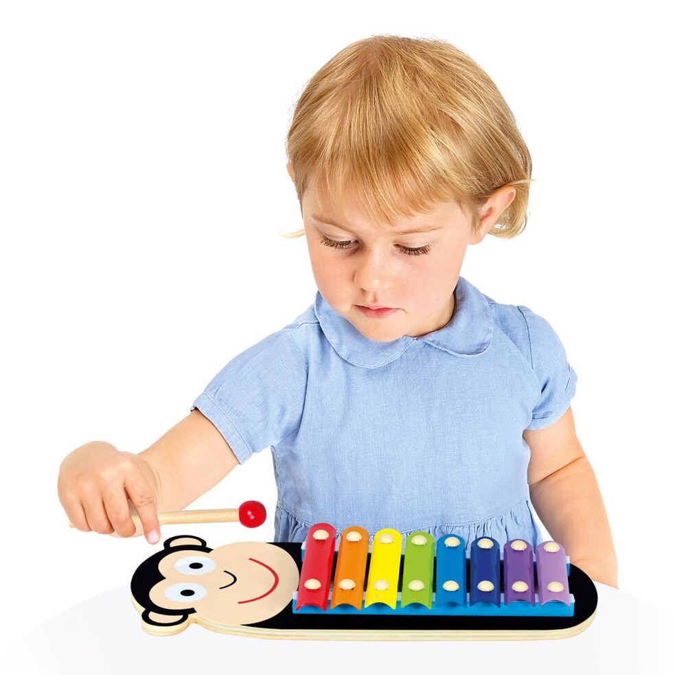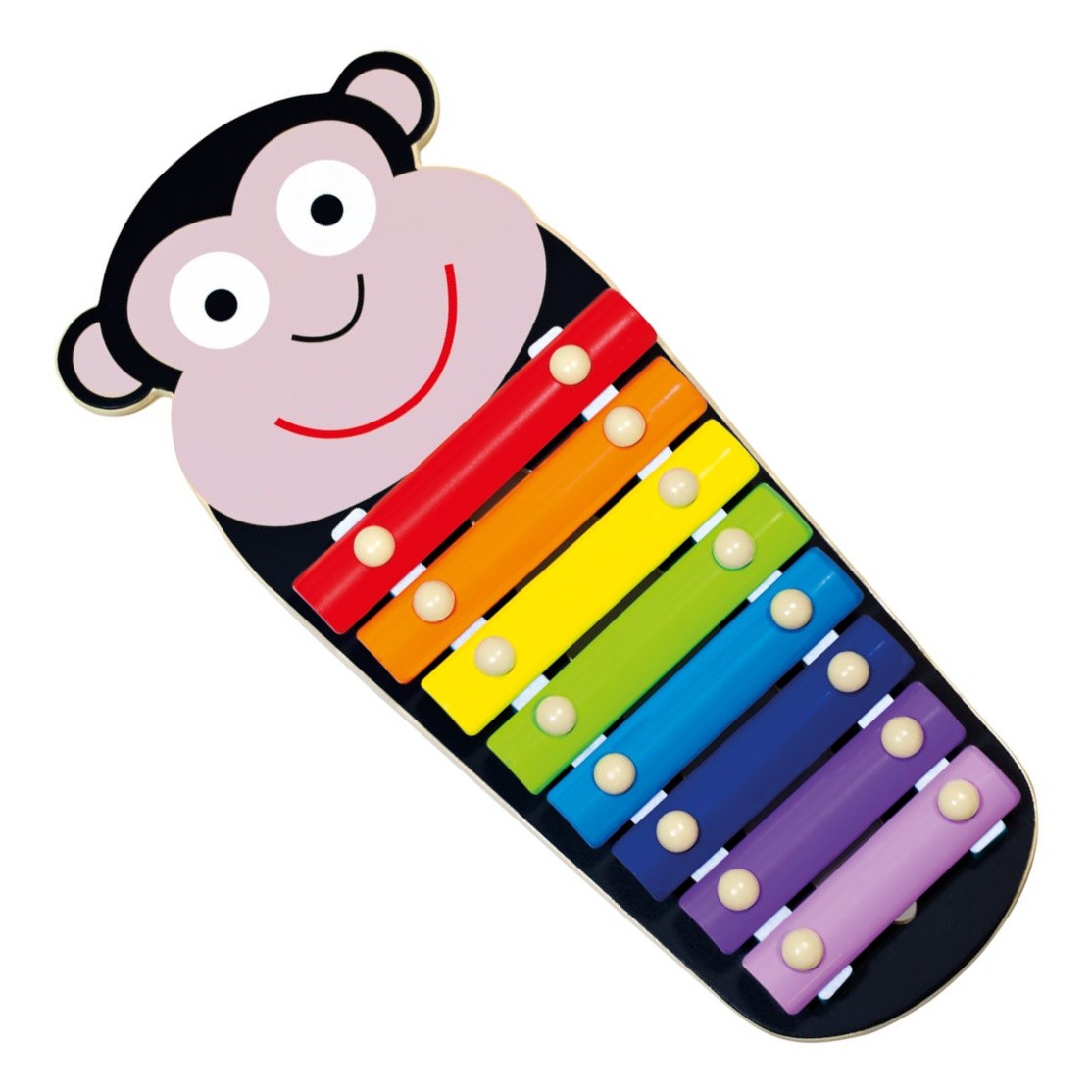 Dětský xylofon s motivem opičky. 3-dílná sada s 8 kovovými zvukovými pláty, které nabízejí hraní v plném rozsahu. Xylofon nabízí dětem příležitost seznámit se se základy hudby a rozvíjet svůj hudební talent. Je tak ideální hračkou pro první dětské hudební kroky. Ošetření nezávadnou barvou, zaoblené rohy a hladké povrchy zajišťují bezstarostné hudební chvilky. Vhodné pro děti od 18 měsíců. Varování! U dětí do 18 měsíců používat pouze pod dohledem dospělé osoby. Hlavní vlastnosti: 3 dílná sada8 zvukůrozvíjí hudební talent