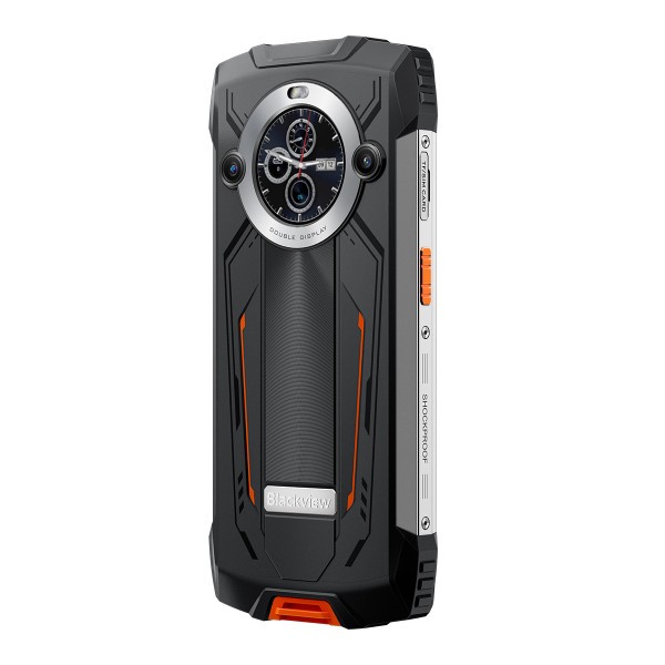 Blackview BV8200 je robustný smartfón navrhnutý pre extrémne podmienky – spĺňa certifikácie IP68, IP69K a MIL‑STD‑810H, odoláva pádu, prachu a vode (relatívne až do 1,5 m). Má osemhranné rozmery 174,6 × 81,1 × 16,5 mm a hmotnosť 370 g, čo zodpovedá jeho pevnej konštrukcii. Predný 6,5″ FHD+ (2400x1080px) IPS displej s obnovovacou frekvenciou 120 Hz je chránený sklom Corning Gorilla Glass 5 – jasný, ostrý a čitateľný za každých svetelných podmienok. Na zadnej strane nájdete sekundárny 1,3″ OLED displej s vodotesnosťou, zobrazením notifikácií, funkciou LED svietidla či štýlovými ciferníkmi.