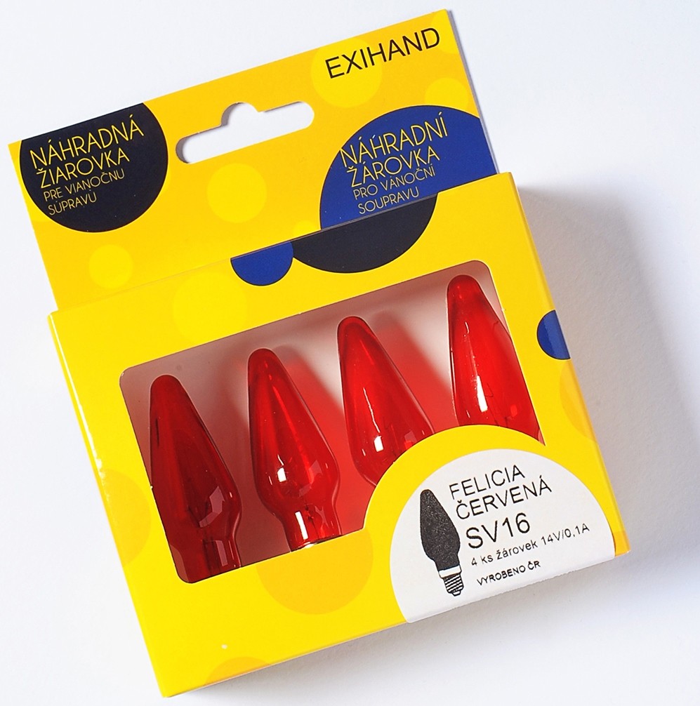Úvod Dom a domácnosť Osvetlenie Vianočné osvetlenie Náhradné žiarovky Blistr 4 žárovky Felicia červená 14V/0,1A