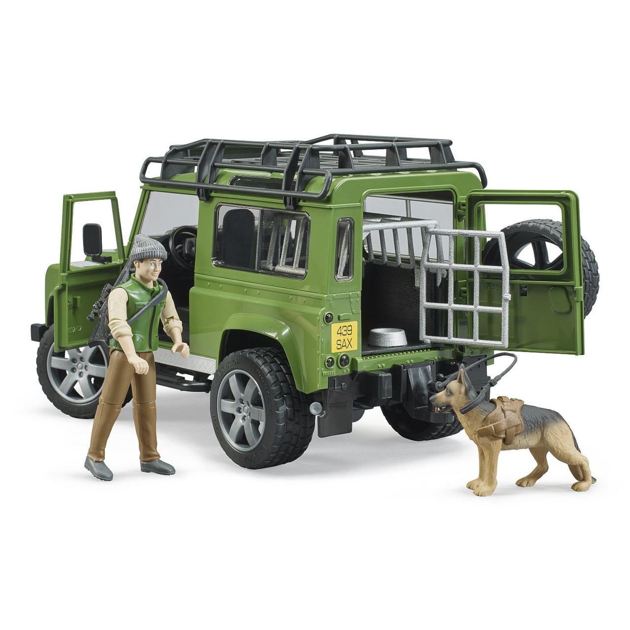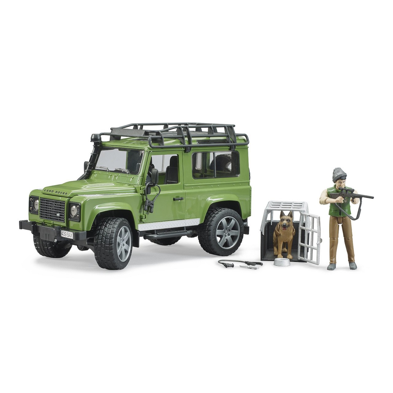 Bruder LAND ROVER DEFENDER s figurkou myslivce, psa a příslušenstvím