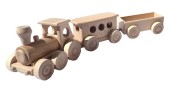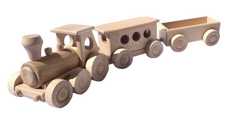 Dřevěný model vláčku je vyroben z vysoce kvalitního bukového dřeva. Jeho povrch je pouze voskován a leštěn, není nijak chemicky upravován či barven, aby byl zachován přírodní vzhled. Dřevěnému vláčku se točí kolečka a nemá žádné ostré hrany. Je vhodné i na pískoviště.  Hlavní vlastnosti: Precizní zpracování bukového dřeva Zaoblené hrany Pohyblivé prvky modelu