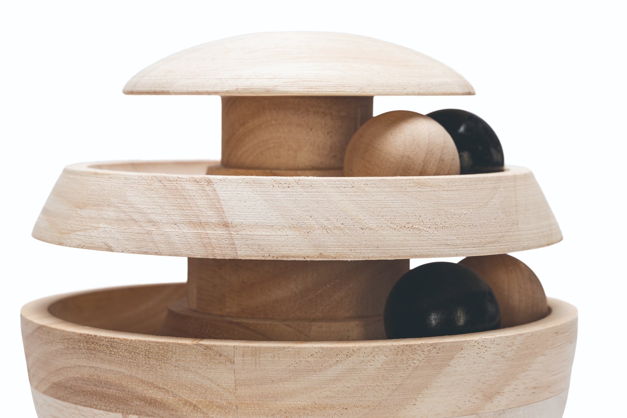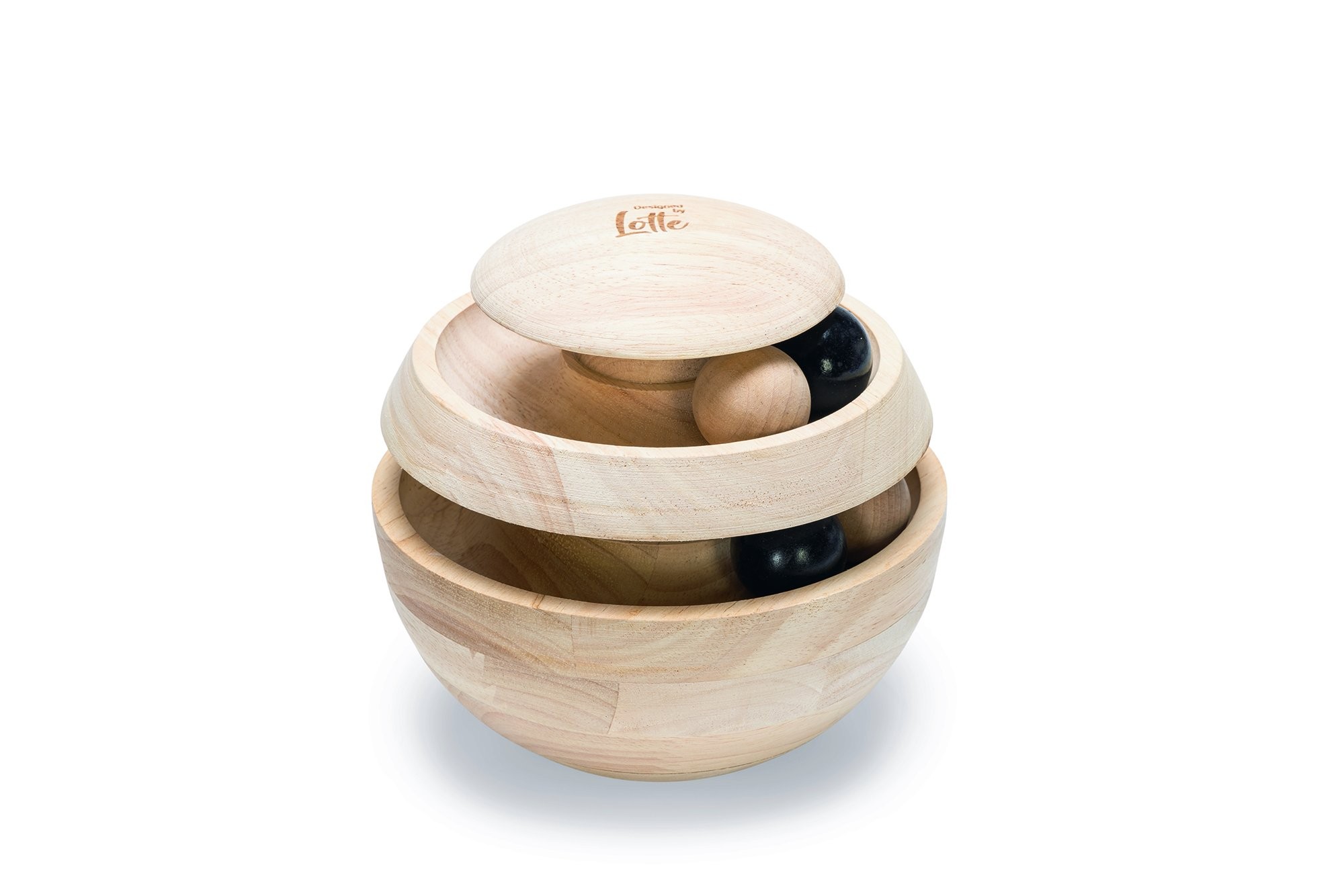 Štýlová hračka v prírodných tónoch so 4 guľami, kaučukové drevo.