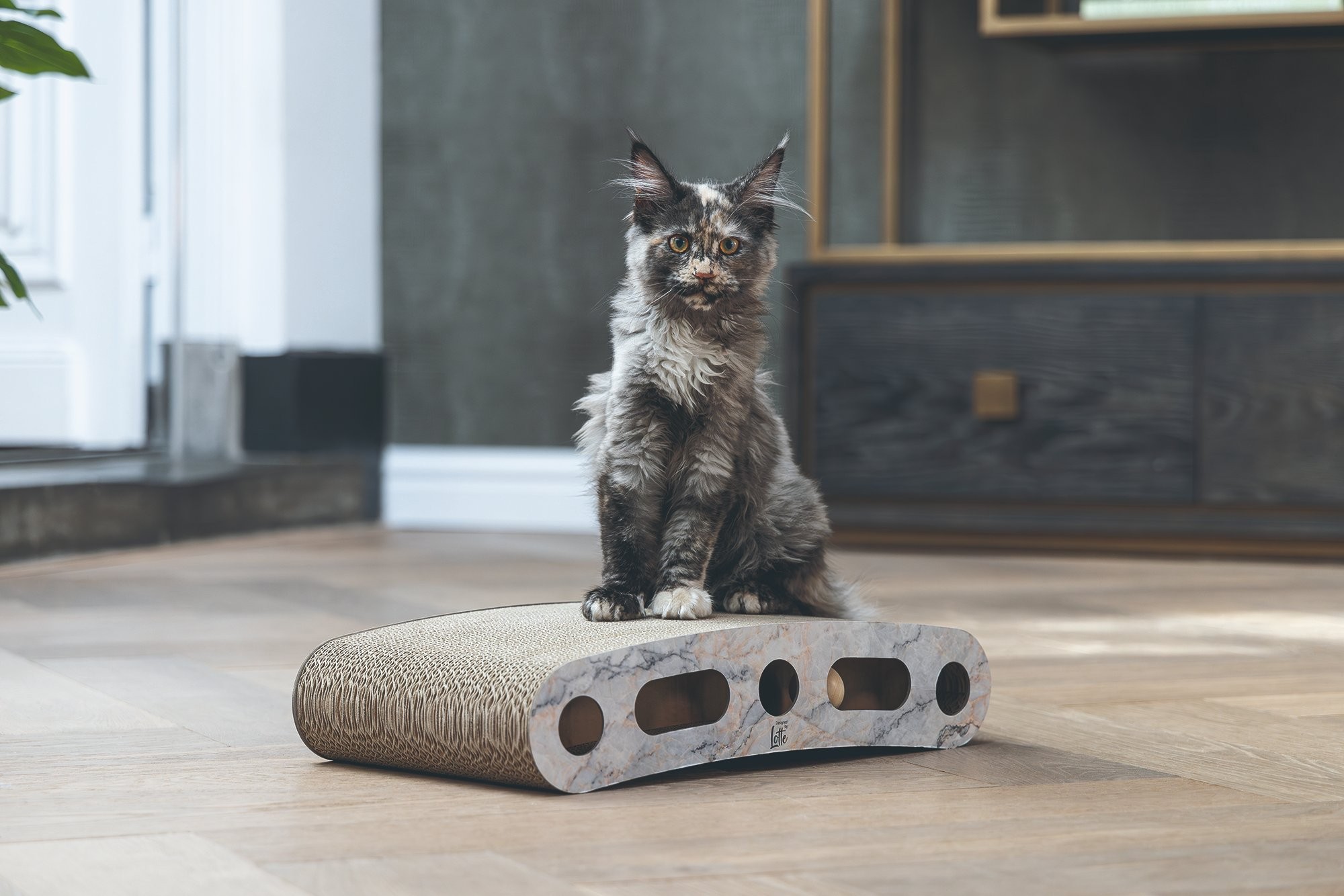 Kartónové škrabadlo a hračka pre mačky v jednom. Obsahuje catnip.