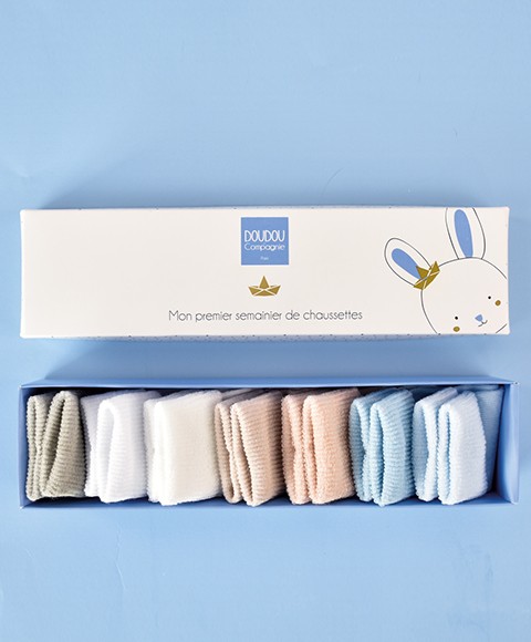 Krásné balení ponožek v dárkové krabičce pro novorozence se skládá ze sedmi párů ponožek. V barvách pro chlapečka. Různé ponožky na každý den v týdnu. Originální dárek k narození miminka. Údržba: Perte v lázni na 30°. Přirozené nebo nízkoteplotní sušení. Hlavní vlastnosti: složení: 79% Bavlna, 18% Polyester, 3% Elastanvhodný dárek k narození miminkaměkké a odolné