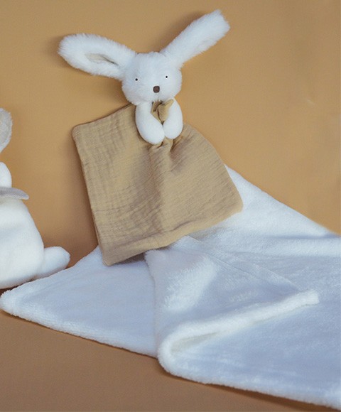 Usínáček králíček a plyšová měkká dečka byly navrženy tak, aby uklidňovaly miminko, byly pohodlné a ochranné. Praktická sada, která Vás nezklame doma ani na procházce. Díky jemným harmoniím trendy barev, směsím velmi jemných materiálů bude tato sada pro miminka velmi příjemná. Ideální také jako dárek.  Údržba: Perte v lázni na 30°. Přirozené nebo nízkoteplotní sušení. Hlavní vlastnosti: měkký plyš, prémiový materiálv souladu s evropskými normami CEvhodné od narození