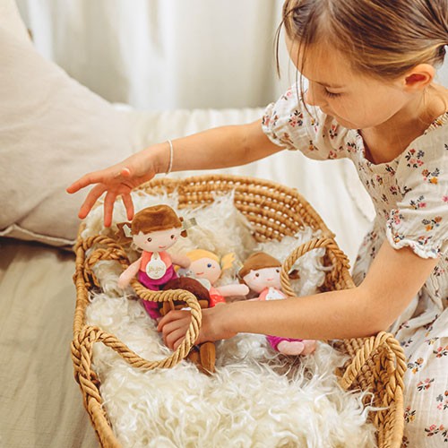 Malá panenka s měkkým tělem oblečená v hezkém oblečku. Tato panenka se snadno ovládá díky své malé velikosti. U dětí rozvíjí jemné motorické dovednosti a probouzí jejich smysly. Údržba: Perte v lázni na 30°. Doporučení: Přirozené nebo nízkoteplotní sušení. Hračka splňuje evropské bezpečností CE normy. Dodáváno v krabičce. Cena je uvedena za 1 ks.Hlavní vlastnosti: vhodné od narozeníbavlněný obličej, vyšívané oči, lícní kosti a ústaměkké tělíčko v hezkém oblečkupěkná otevřená krabička