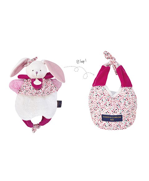 Králíčka, usínáčka 30cm lze přeměnit na pěknou taštičku, která králíčka uschová. Praktická hračka na hraní doma nebo procházku. Pro miminko bude mít především uklidňující efekt. Díky jemným harmoniím trendy barev, směsím velmi jemných materiálů bude tato sada lákat malé i větší děti. Ideální také jako dárek. Stimuluje představivost. Údržba: Perte v lázni na 30°. Přirozené nebo nízkoteplotní sušení. Hlavní vlastnosti: exkluzivní a inovativní konceptv souladu s evropskými normami CE3 v 1