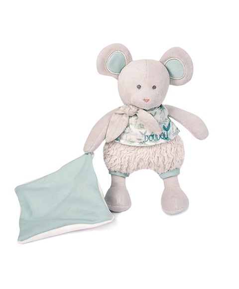 Doudou Plyšová myška s dečkou z BIO bavlny 22 cm