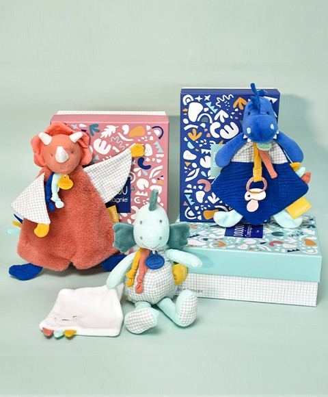 Dinosaurus se rychle stane nerozlučným společníkem Vašeho dítěte. Tento rozkošný dinosaurus v mentolově zelené barvě s dečkou, je extrémně měkký a příjemný na dotek. Rozvíjí smysly a zvědavost. S tímto plyšákem se dobře manipuluje dětem už od od prvních týdnů svého života. Tato hračka je dodávána v nádherné dárkové krabičce s grafikou evokující modernost i luxus. Ideální jako dárek k narození dítěte. Údržba: Perte v lázni na 30°. Přirozené nebo nízkoteplotní sušení. Hlavní vlastnosti: měkký plyš, prémiový materiálv souladu s evropskými normami CEkamarád, polštářek, nebo také výzdoba dětského pokojevhodné od narození