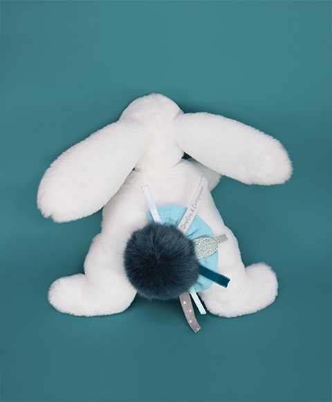 Tento králíček může být kamarád, polštářek, nebo také výzdoba dětského pokoje. Je extrémně měkký, stylový s bambulí v tmavě modré barvě a efektním šátkem kolem krku. Praktická hračka na hraní doma nebo procházku. Pro miminko bude mít především uklidňující efekt. Díky jemným harmoniím trendy barev, směsím velmi jemných materiálů bude tato hračka lákat malé i větší děti. Ideální také jako dárek. Údržba: Perte v lázni na 30°, aby si zachoval svou hebkost. Přirozené nebo nízkoteplotní sušení. Hlavní vlastnosti: měkký plyš, prémiový materiálv souladu s evropskými normami CEkamarád, polštářek, nebo také výzdoba dětského pokojevhodné od narození
