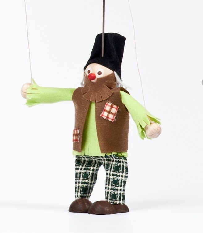 Otrhaný loupežník s plnovousem může být postrachem každého lesa nebo jeskyně. Porazí loupežníka silný Honza nebo chrabrý princ? Nabízíme vám loutku o velikosti 12 cm bez vodícího drátku, vyrobenou pečlivě v naší chráněné dílně. Produkt se může lišit v barevných detailech. Hlavní vlastnosti: Ručně vyráběná loutka z chráněné dílnyVelikost loutky je 12 cm bez vodícího drátkuDíky vodícím nitím, má loutka pohyblivé ruce