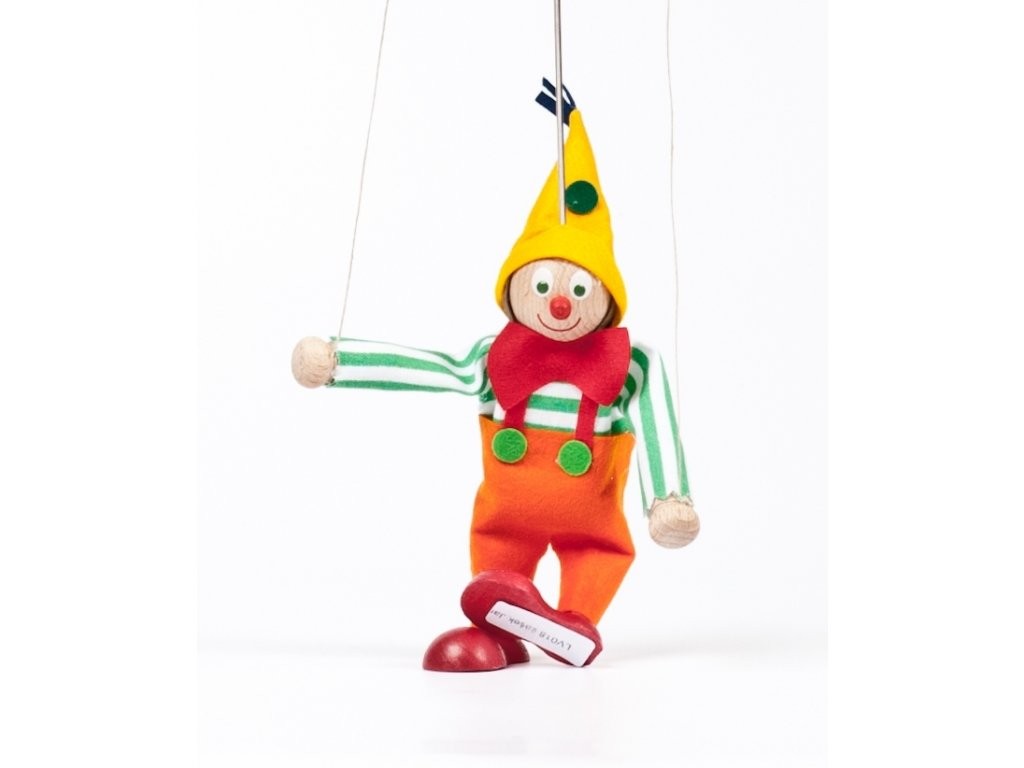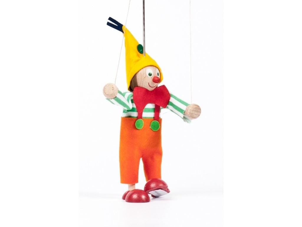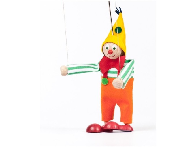 Šašek Jarmil v pestrém oděvu s čepicí na hlavě přináší radost a smích i do vašeho divadla. Vytvořte mu veselý příběh, zahrajte si na cirkus. Nebo ho nechte rozesmát princeznu. Nabízíme vám loutku o velikosti 12 cm bez vodícího drátku, vyrobenou pečlivě v naší chráněné dílně. Díky nitkám má loutka pohyblivé ruce. Produkt se může lišit v barevných detailech. Hlavní vlastnosti: Ručně vyráběná loutka z chráněné dílnyVelikost loutky je 12 cm bez vodícího drátkuDíky vodícím nitím, má loutka pohyblivé ruce